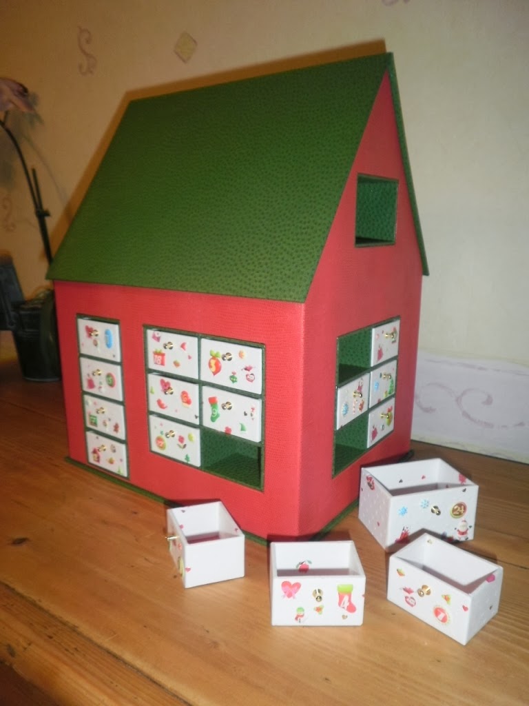 Voici donc ma maison de l’avent avec en guise de porte et fenêtres, 24 petits tiroirs prêts à accueillir surprises et gourmandises pour nos bambins!